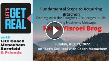 Rabbi Yisroel Brog on Let's Get Real with Coach Menachem. Sunday August 21, 2022, Shiur # 113