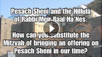 Today, the 14th of Iyar, is known as Pesach Sheni. Pesach Sheni commemorates the day when someone who was unable to participate in the Passover offering in the proper time would observe the mitzvah exactly one month later. In addition to that, today is the Hillula of Rabbi Meir Baal Ha'Nes. Did you know that today that we don't have a Beit Ha'Mikdash we can substitute the mitzvah of bringing an offering on Pesach Sheni by making a donation for the neshama of Rabbi Meir Baal Ha'Nes? Watch this video by Rabbi Israel Yakobov to hear more about this secret...