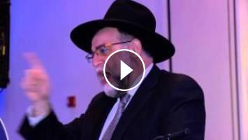 Rabbi David Ozeri speaking at the the grand Dinner Siyum Hashas, and Yaakov Shwekey singing Vezakeini