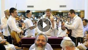 לפני התיבה עבר החזן יצחק מאיר, בליווי כלי נגינה